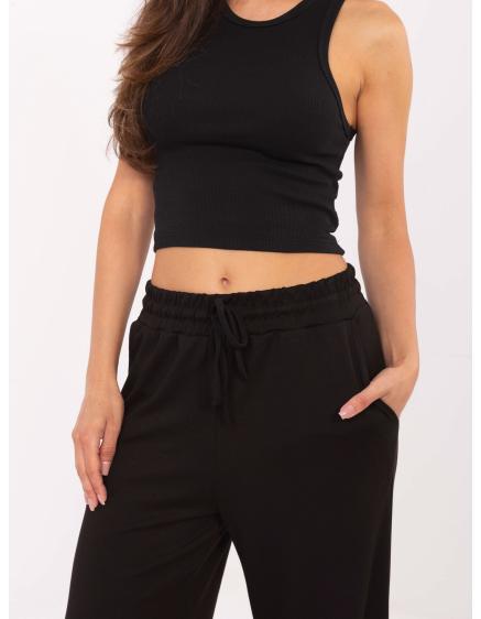 Čierne basic tepláky so širokými nohavicami RUE PARIS