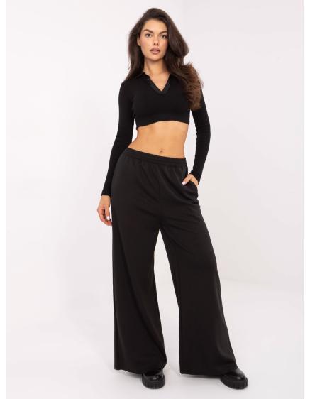 Čierne basic nohavice so širokými nohavicami RUE PARIS