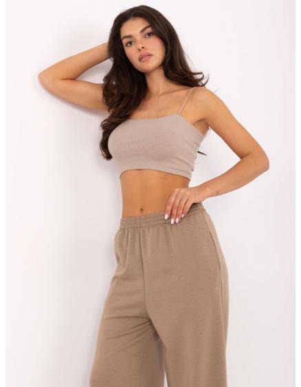 Tmavobežové nohavice s vysokým pásom RUE PARIS
