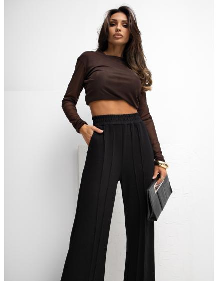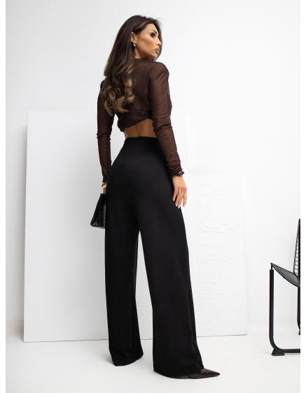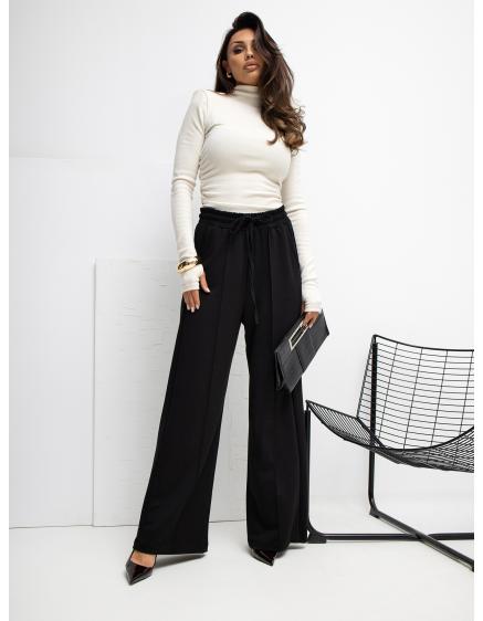 Čierne basic nohavice so širokými nohavicami RUE PARIS