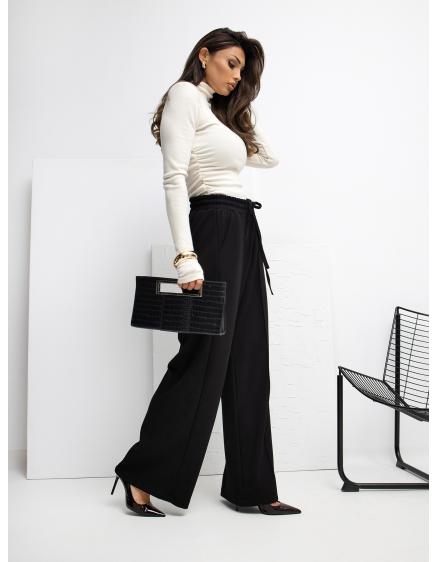 Čierne basic tepláky so širokými nohavicami RUE PARIS