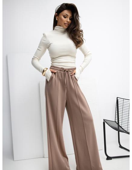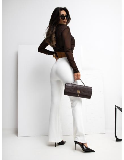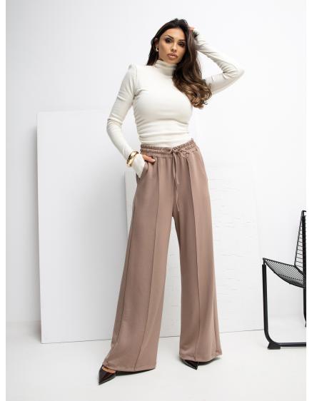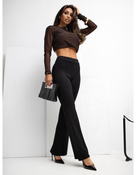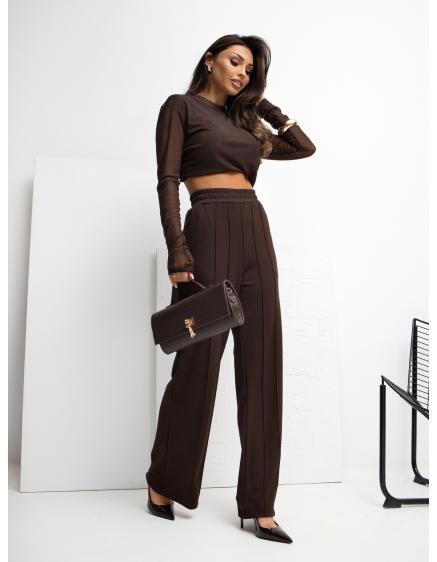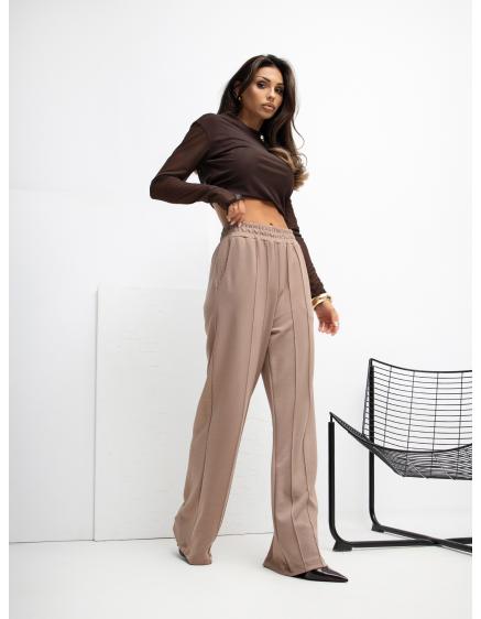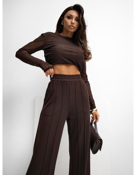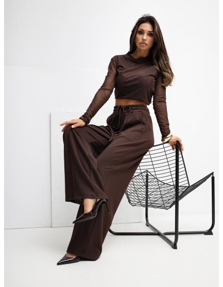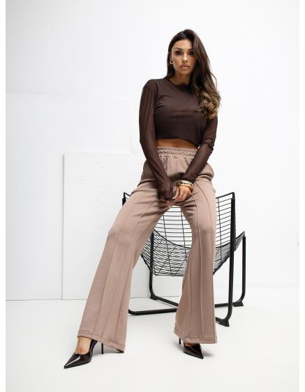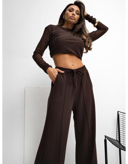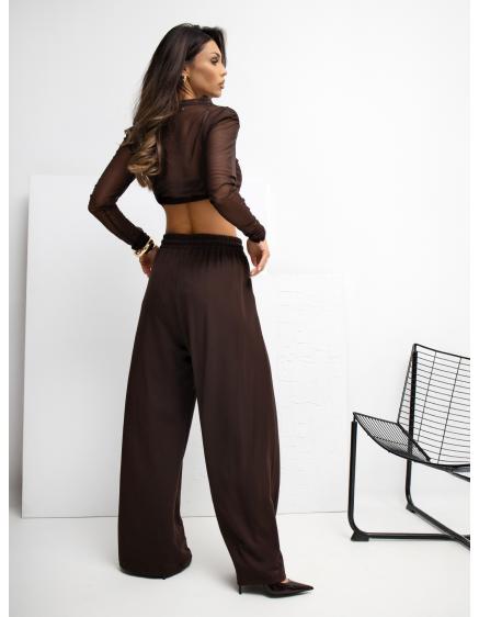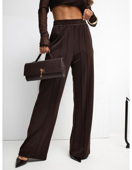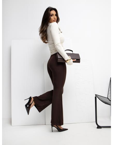 Čokoládové nohavice s rozšírenými nohavicami RUE PARIS