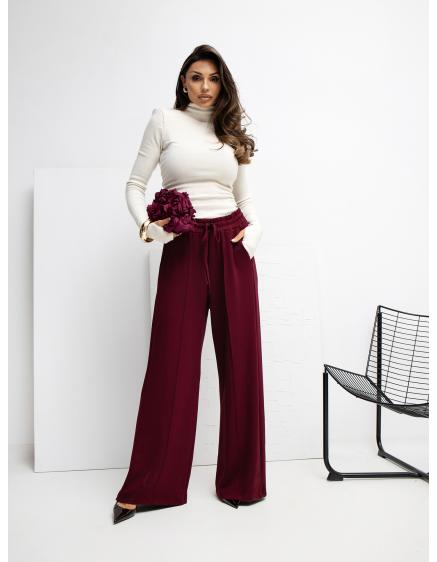 Burgundské palazzo nohavice so zapínaním na viazanie RUE PARIS