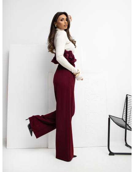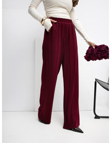 Burgundské basic nohavice s vysokým pásom RUE PARIS