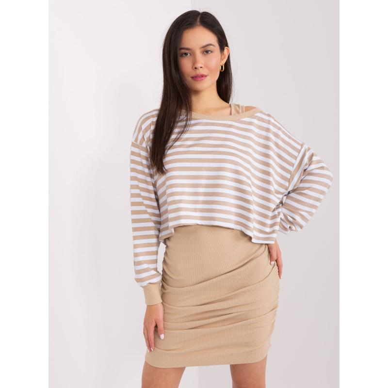 Bežovo-bílá souprava basic s pruhovanou blůzou