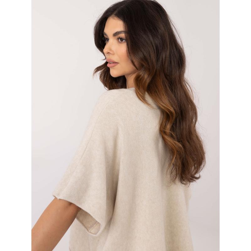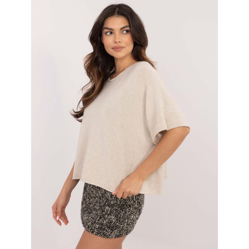 Bézs színű női basic pulóver 3/4-es ujjakkal
