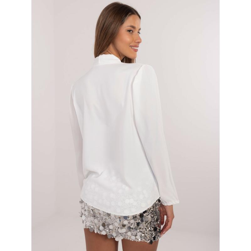 Bílá obálková společenská halenka s dlouhým rukávem