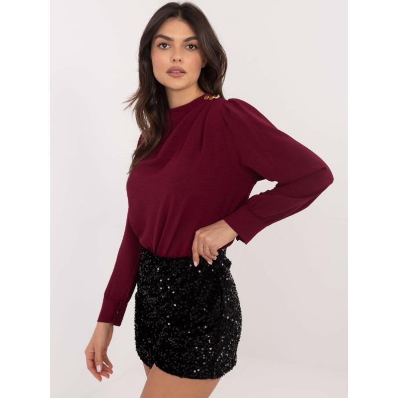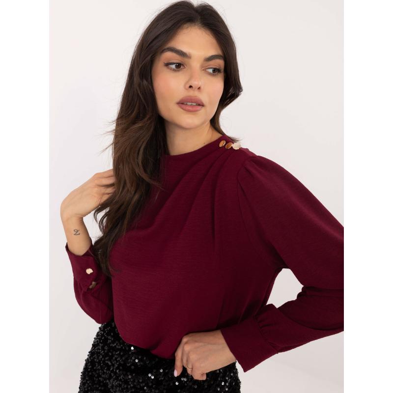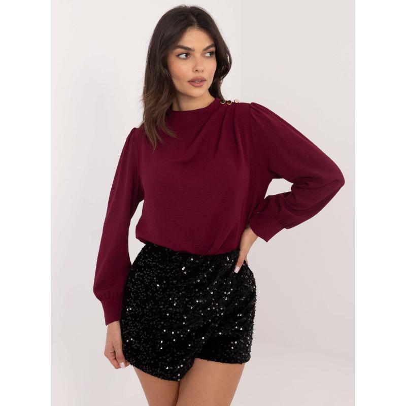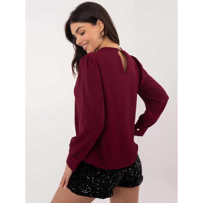 Vínová spoločenská blúzka s kvetinovou aplikáciou