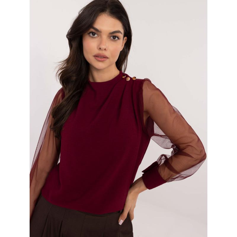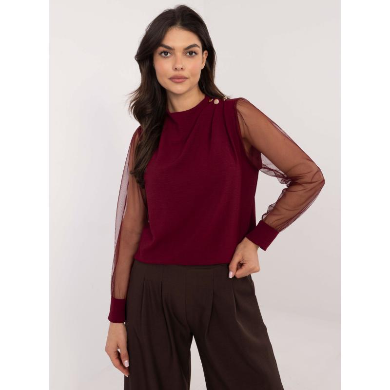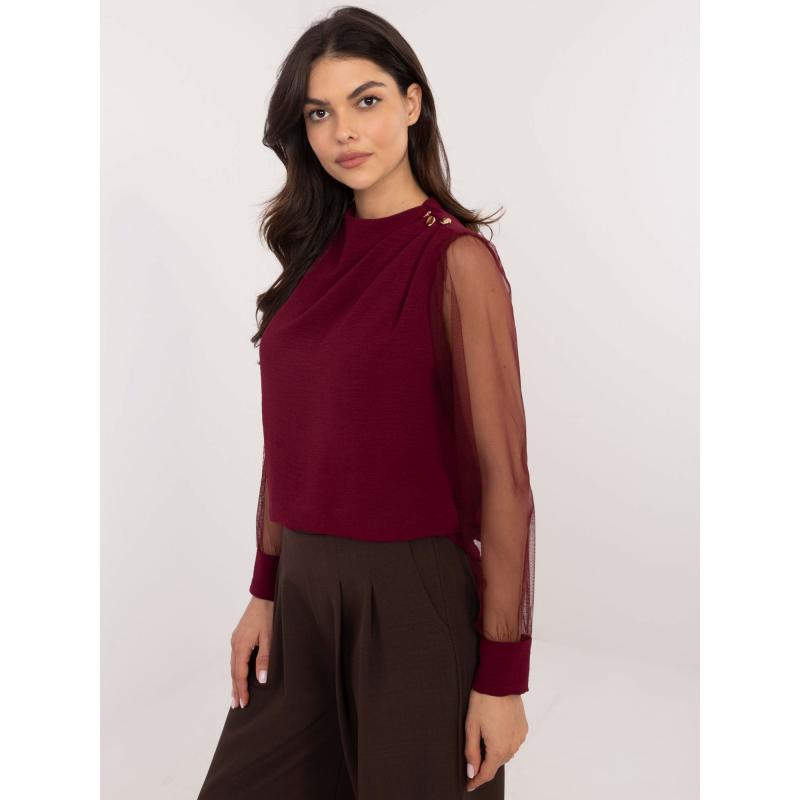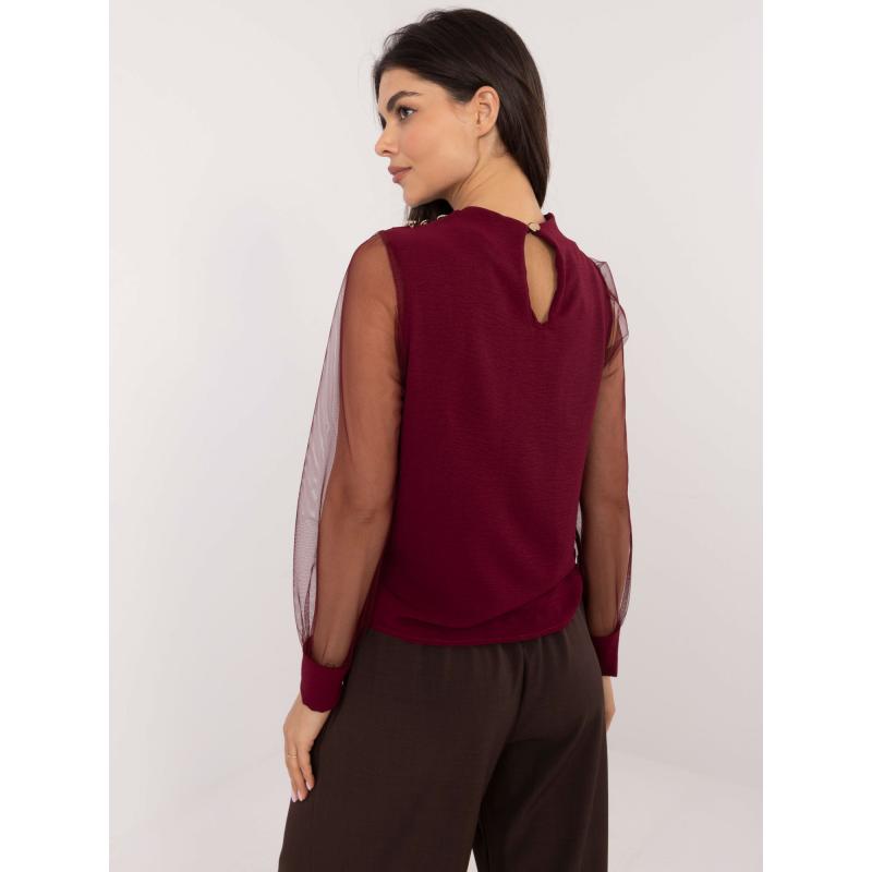 Vínová spoločenská blúzka s kvetinovou aplikáciou