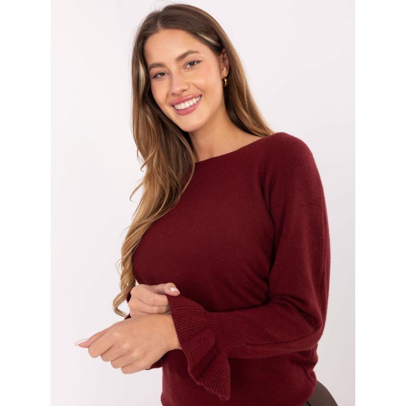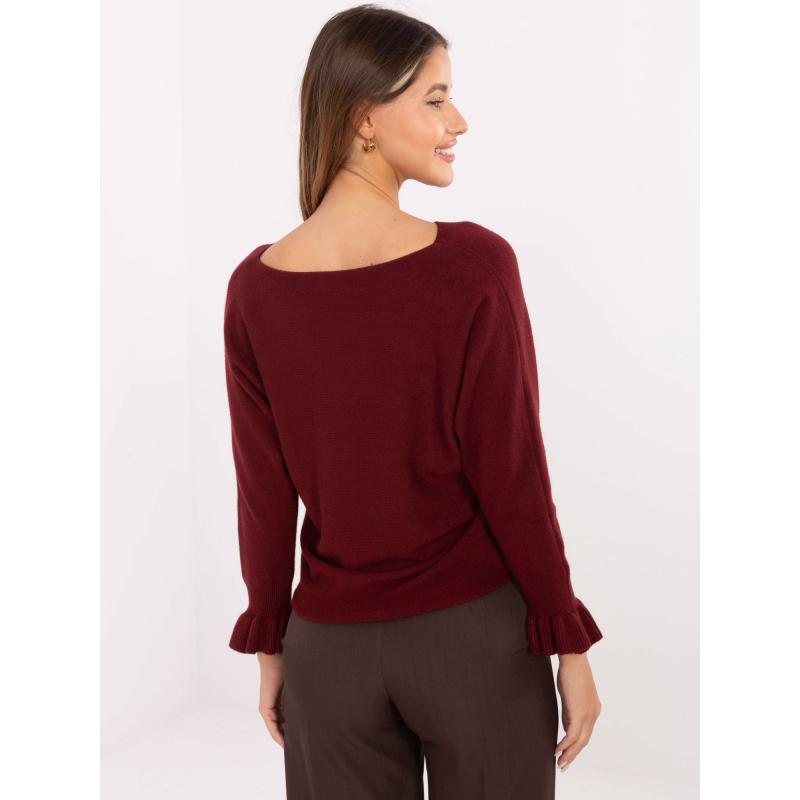 Burgundský sveter s volánikmi na rukávoch