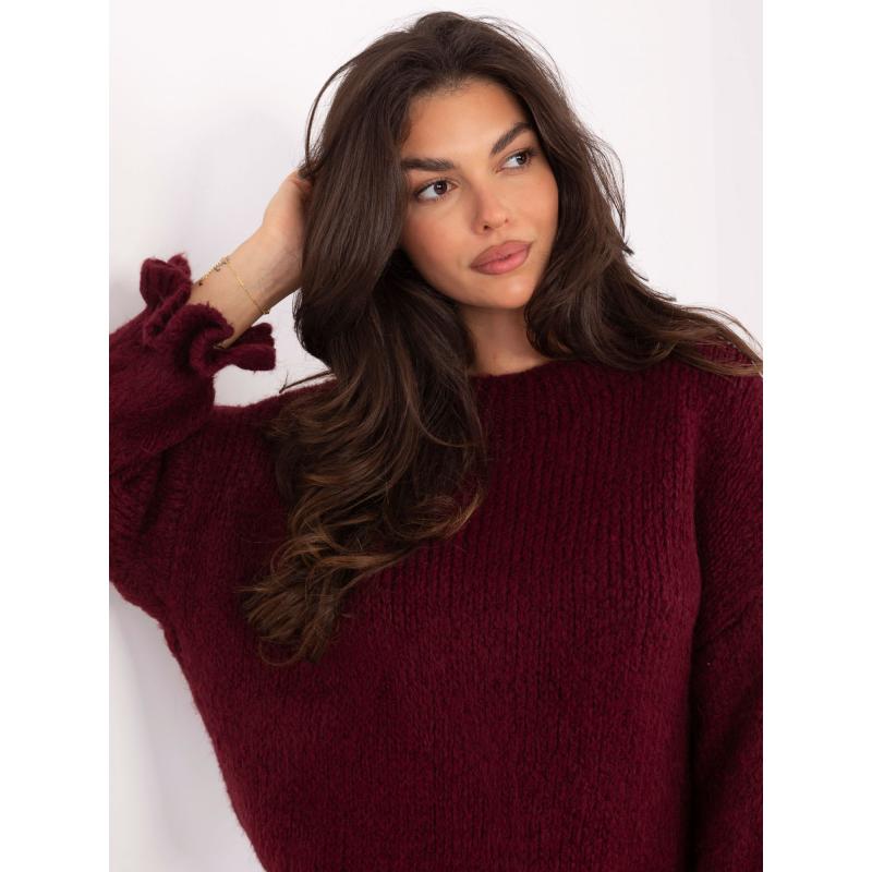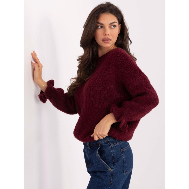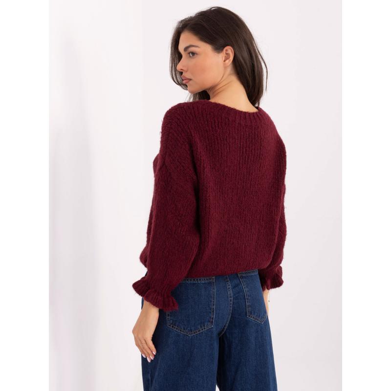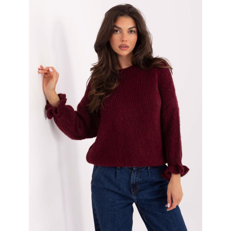 Bordó pulóver volánokkal az ujjakon