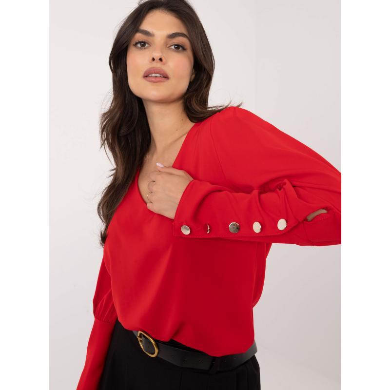 Piros elegáns blúz díszgombokkal