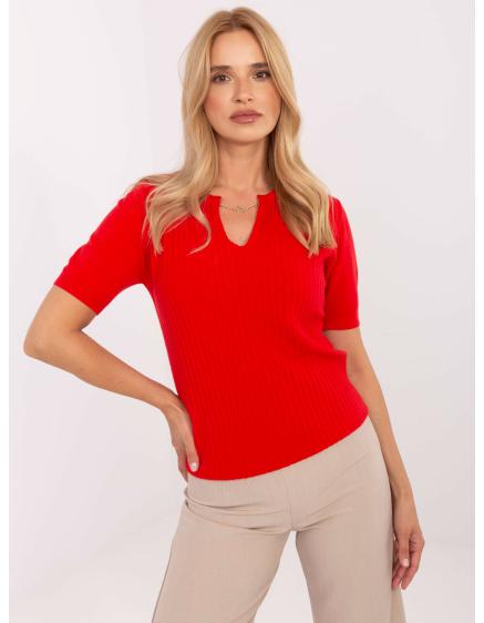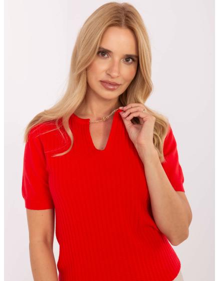 Piros pulóver kerek nyakkivágással