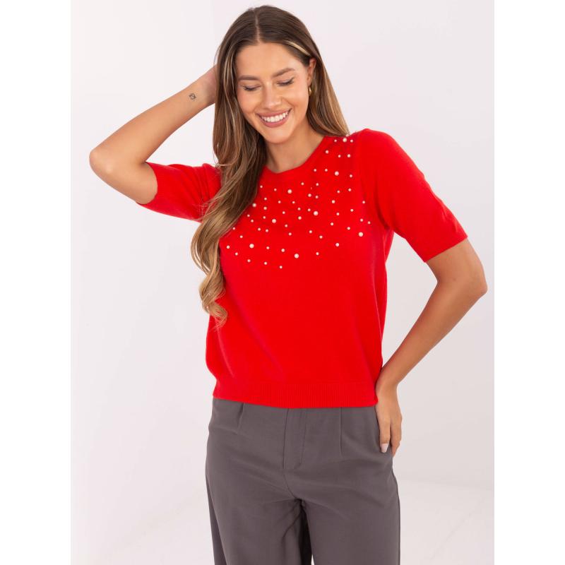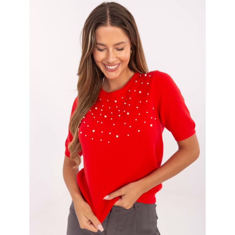 Červené dámske svetre s aplikáciami