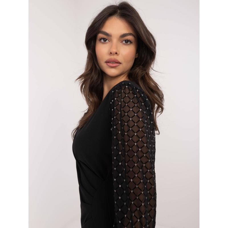 Černé koktejlové šaty se síťovanými rukávy