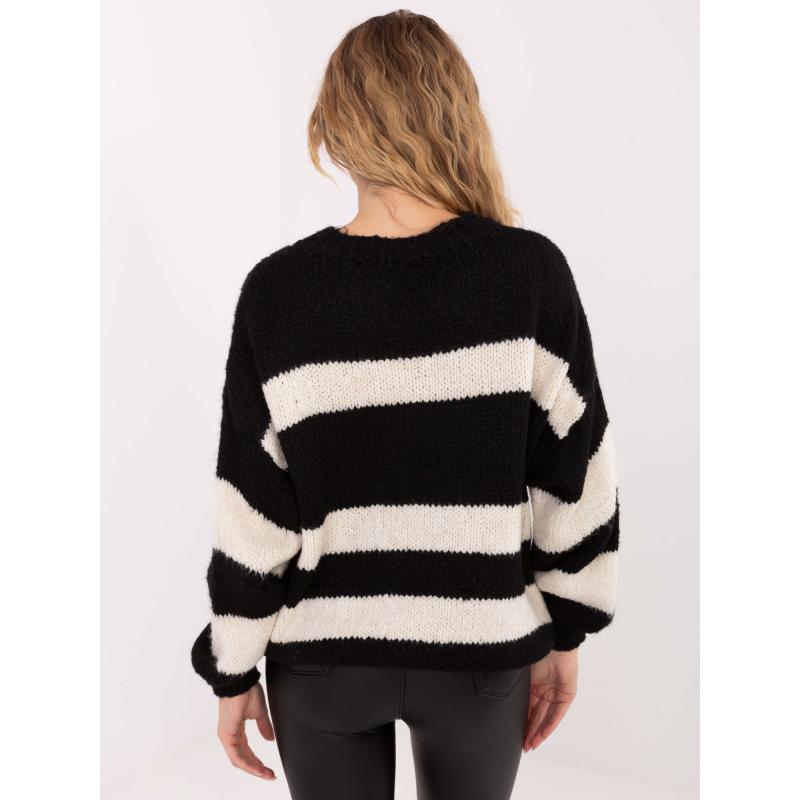 Čierny dámsky oversized sveter z vlnenej zmesi