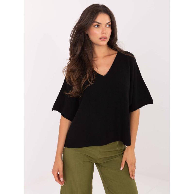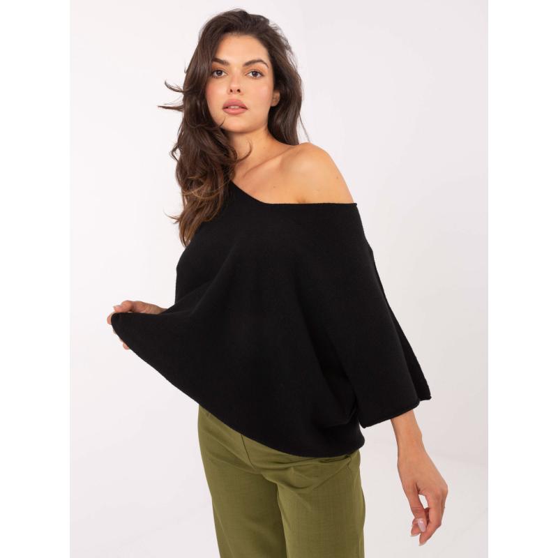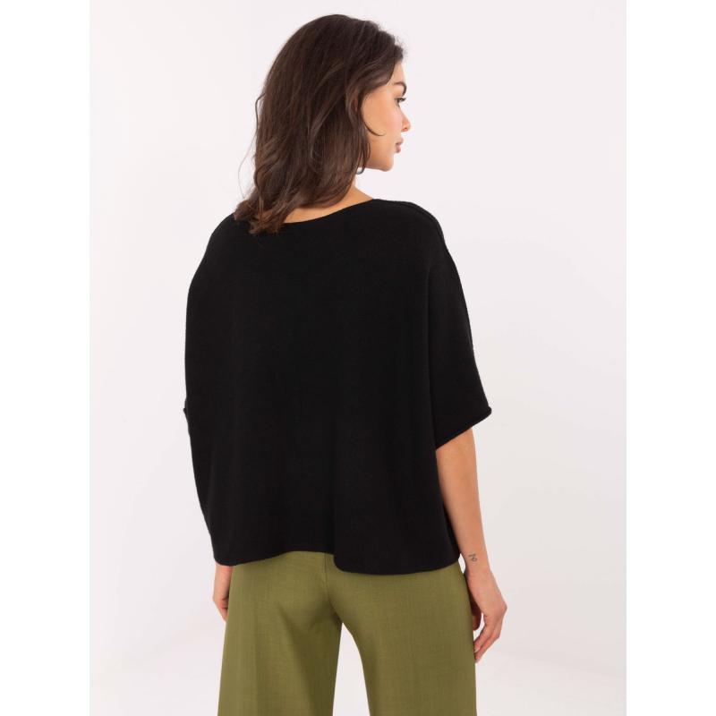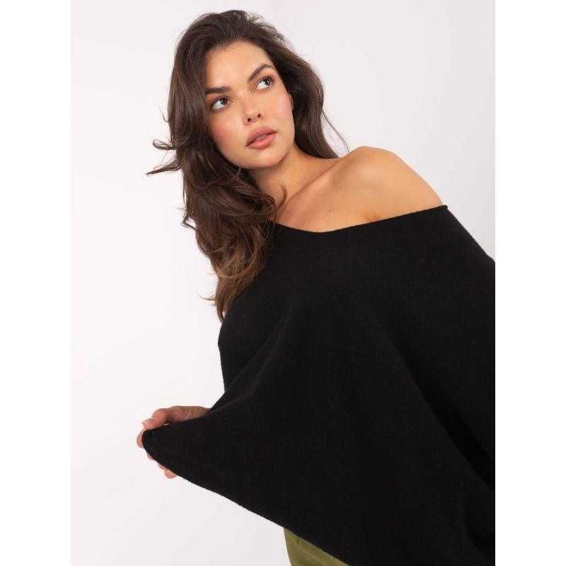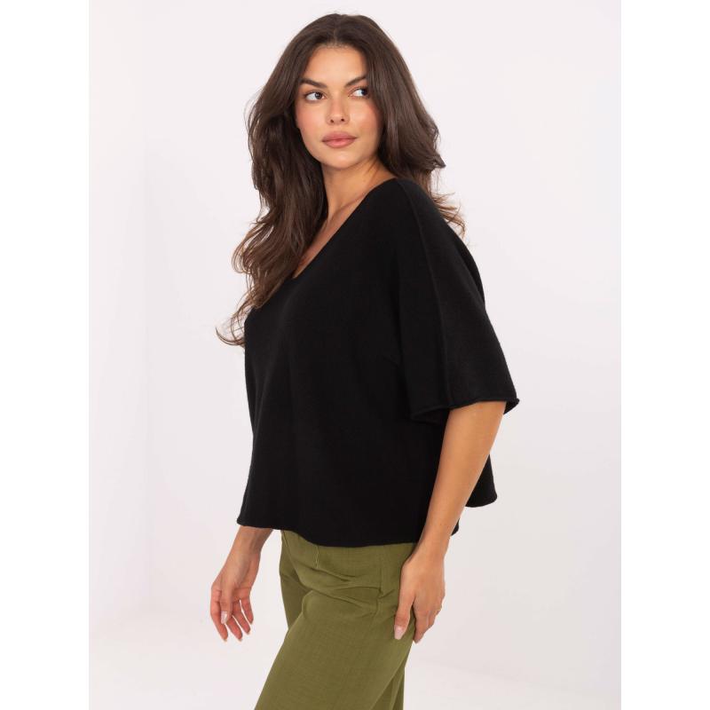 Čierny dámsky oversized sveter z vlnenej zmesi
