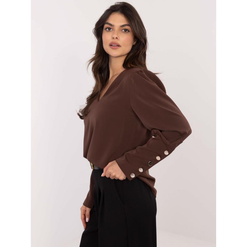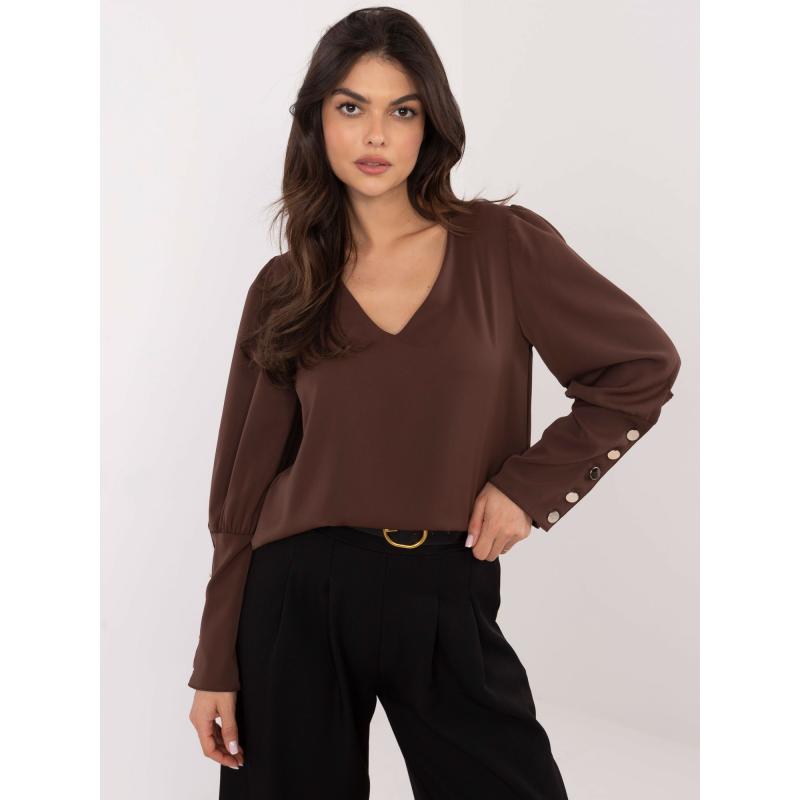 Csokoládés elegáns V-nyakú blúz