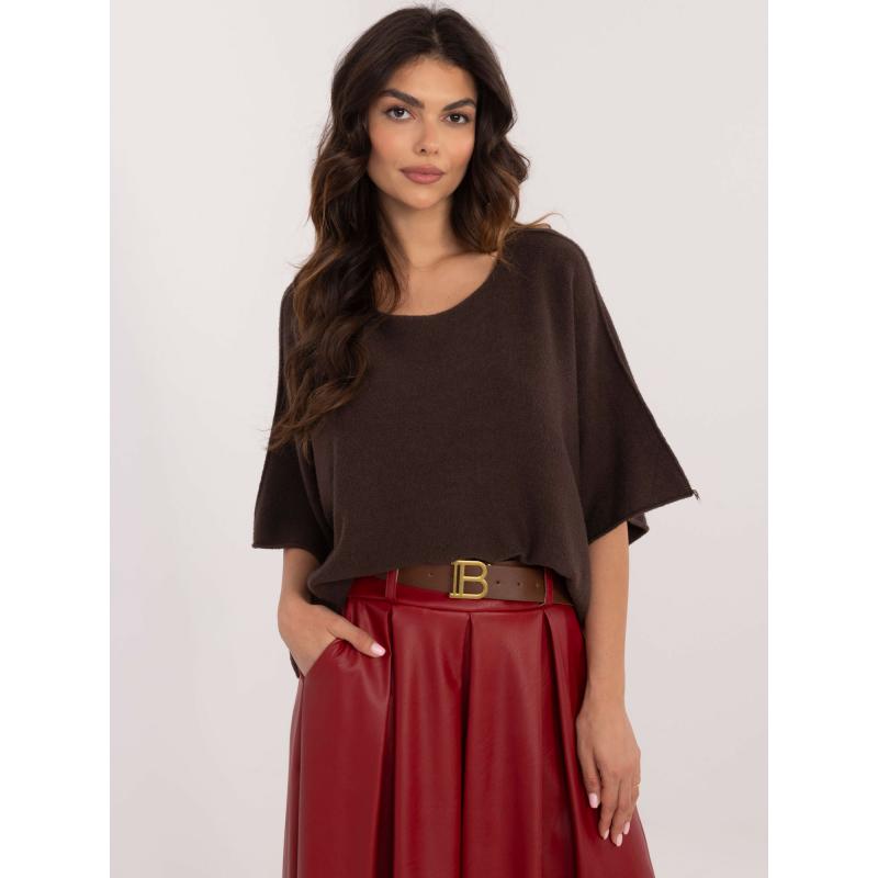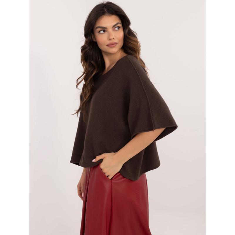 Tmavo hnedý sveter s gombíkmi v oversized strihu