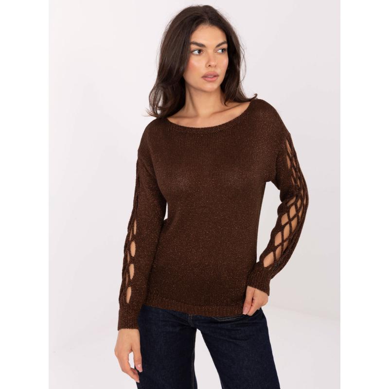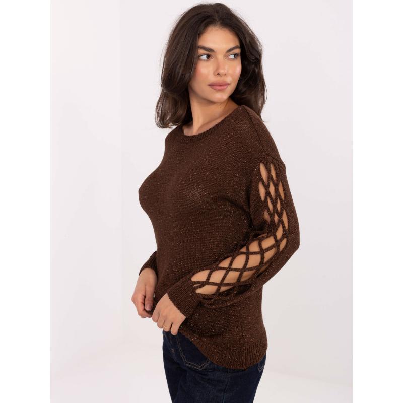 Čokoládový sveter s výrezmi na rukávoch