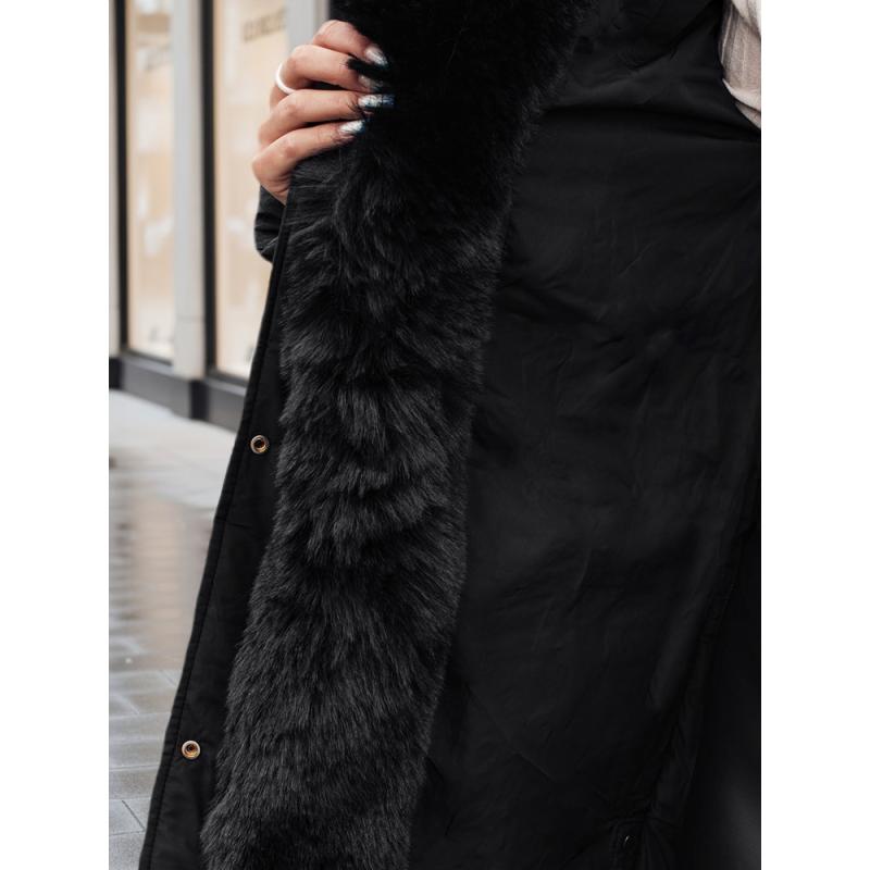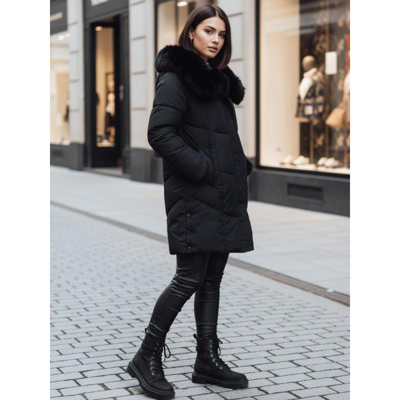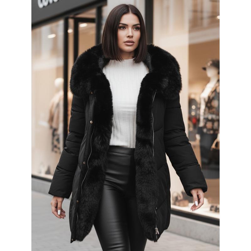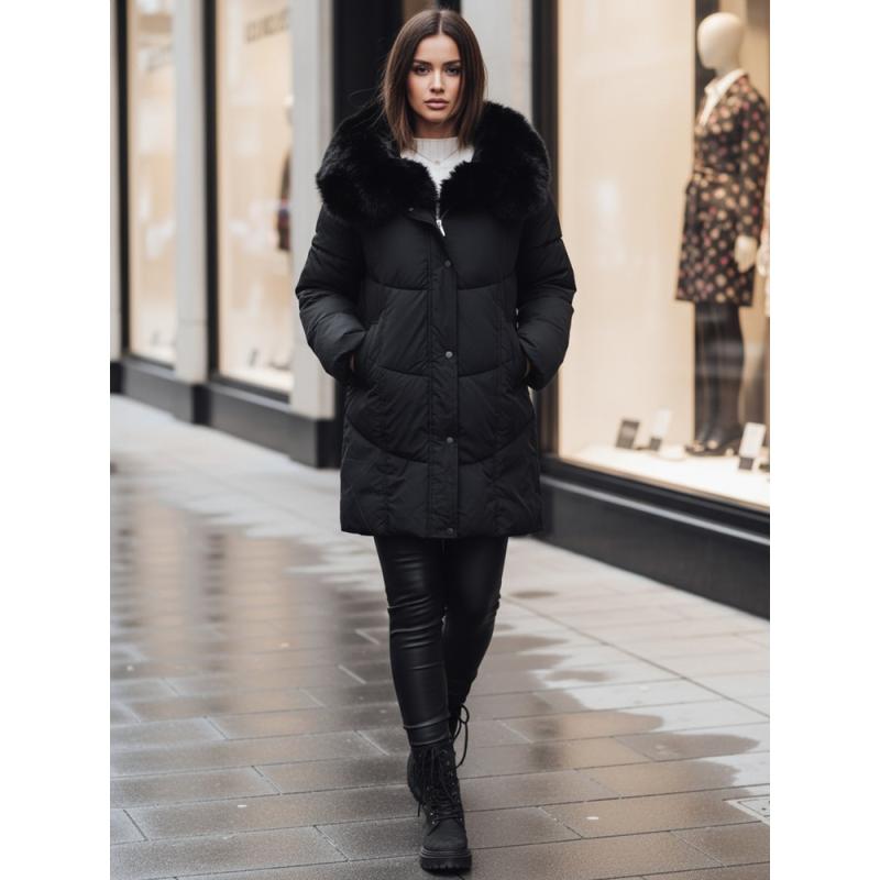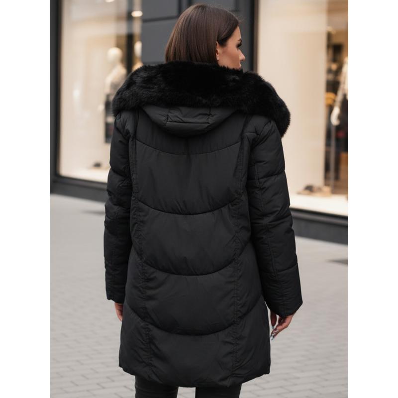 Dámska dlhá prešívaná zimná bunda MORISIO s kapucňou, čierna