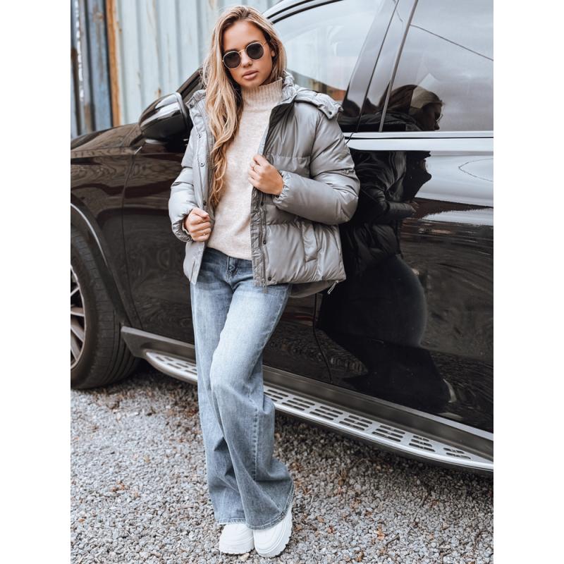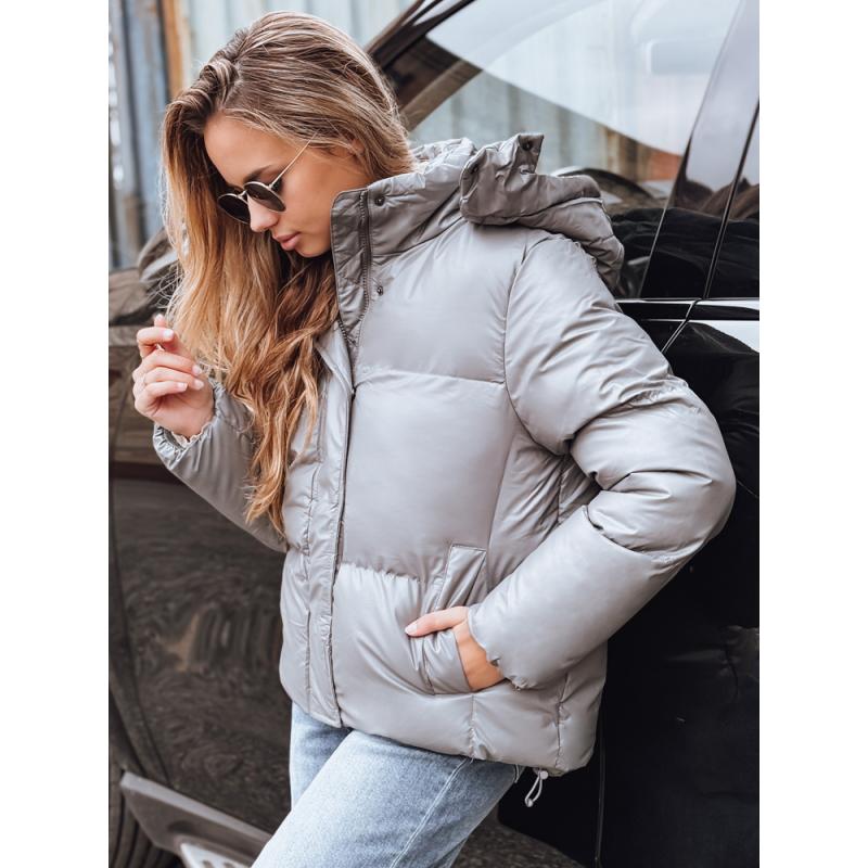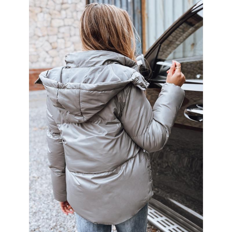 Dámska kožená bunda tmavo sivá