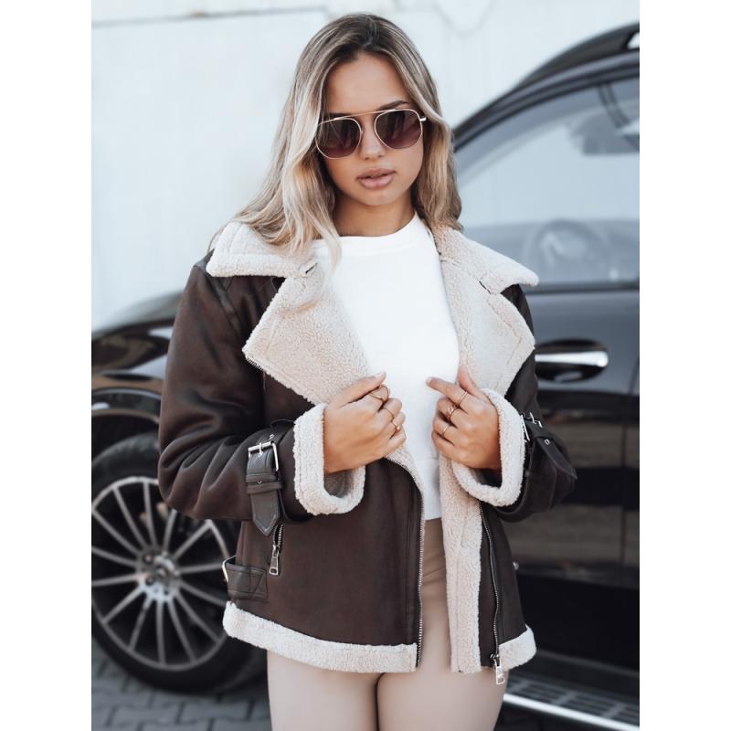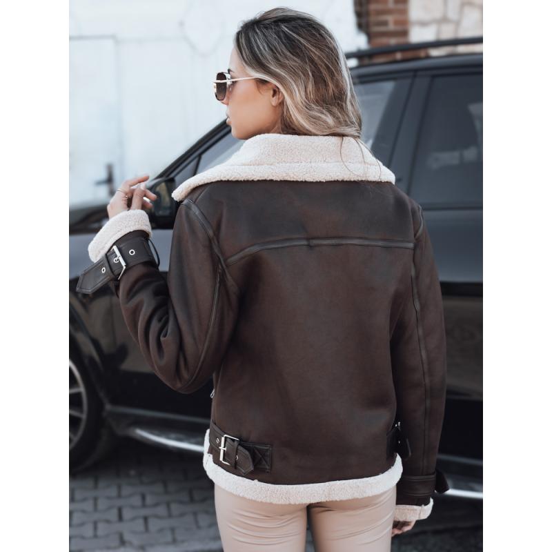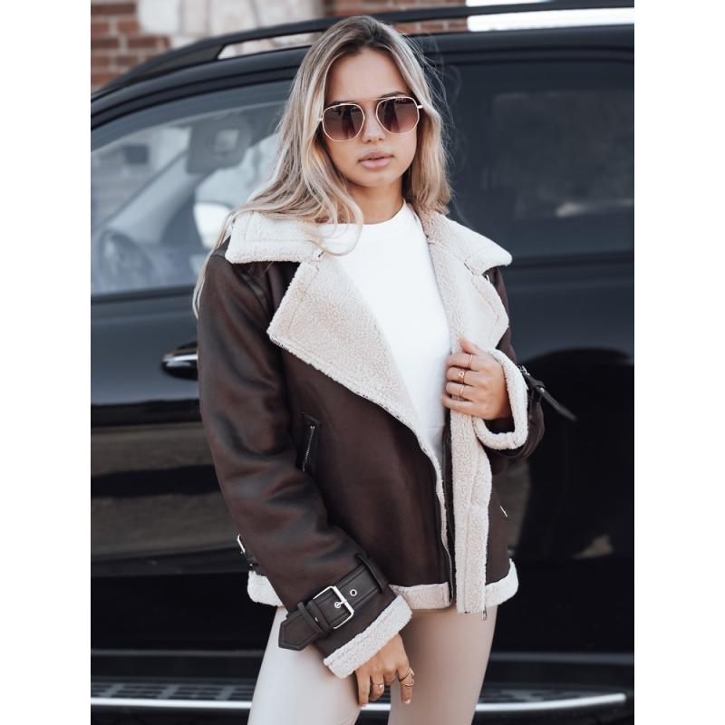 Dámska motorkárska bunda s kožušinkou, hnedá