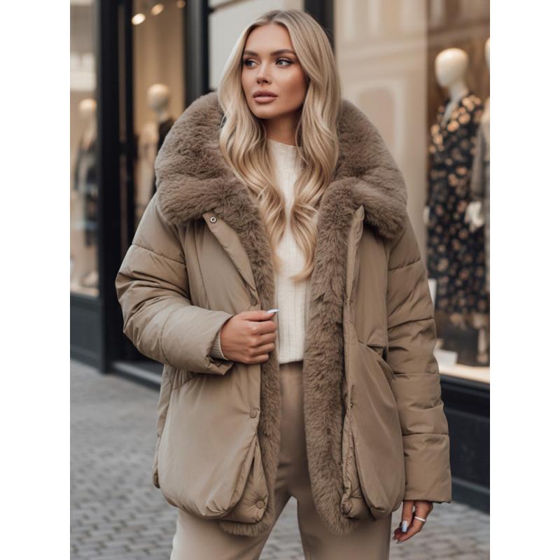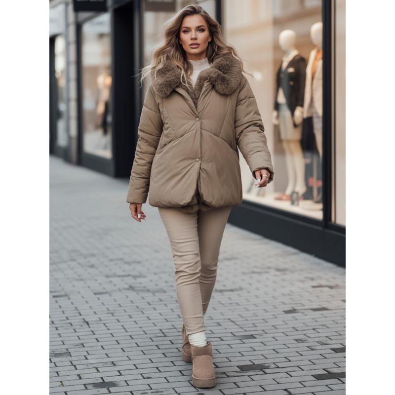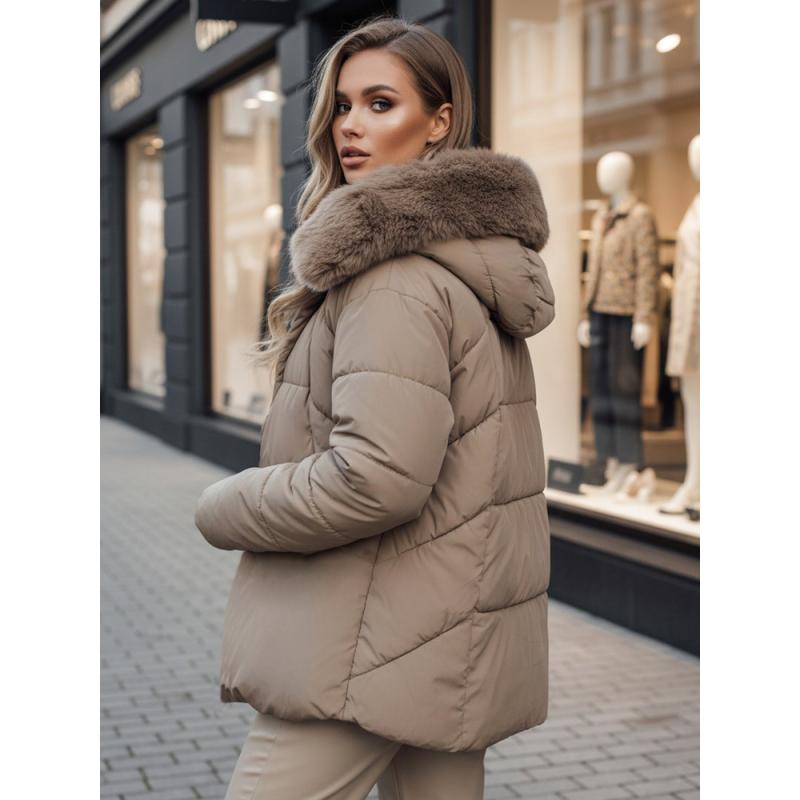 Dámska prešívaná zimná bunda LUNAVI s kožušinkou, svetlo béžová