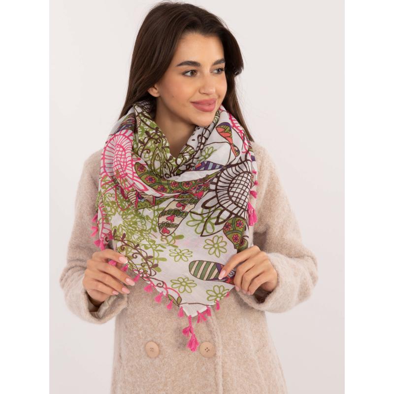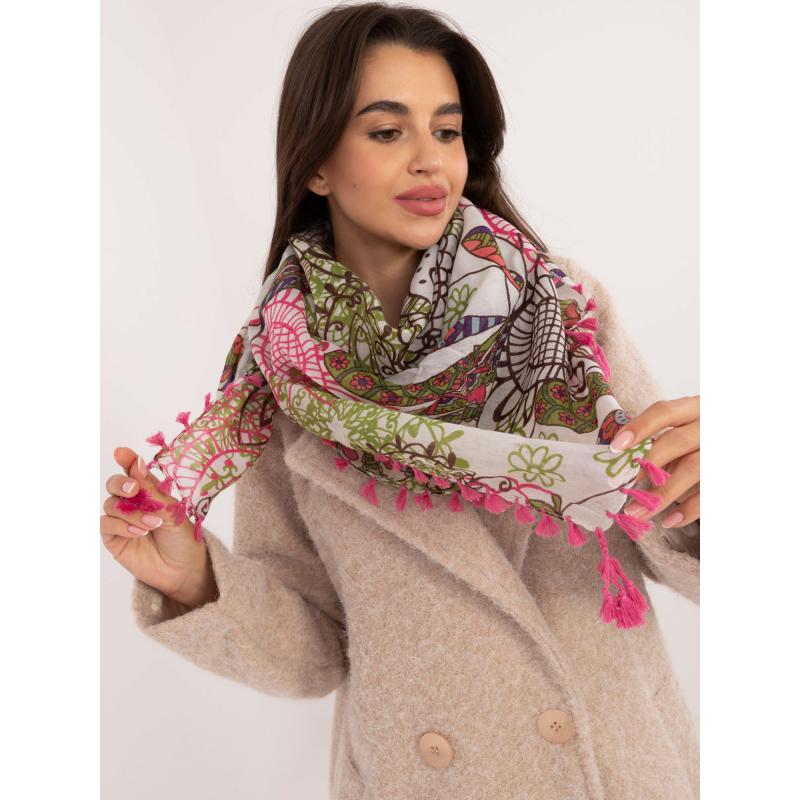 Dámská šála se střapci růžová a ecru