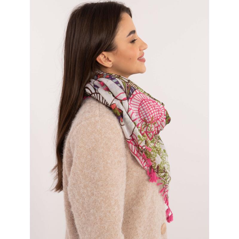 Női sál rojtokkal rózsaszín és ekrü színben