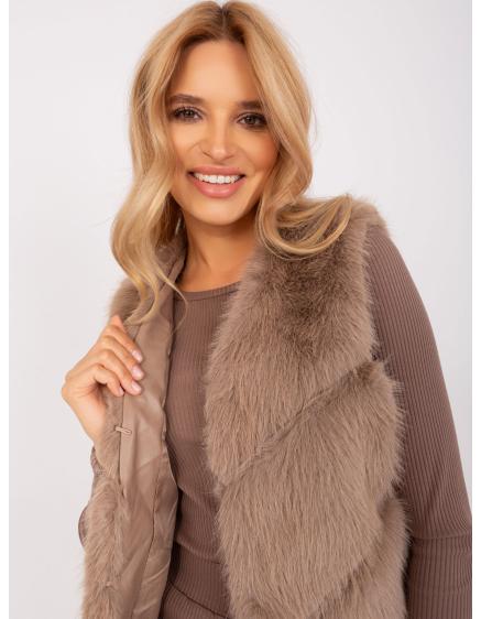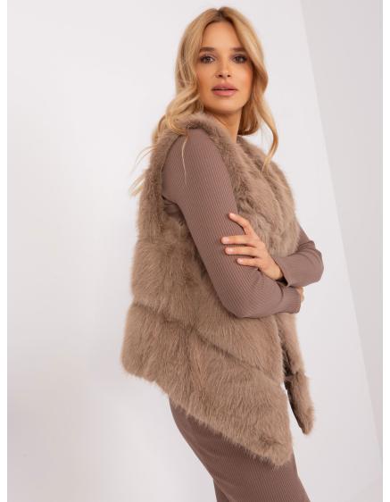 Dámska vesta s vreckami prešívaná páperová CHANTE tmavo béžová