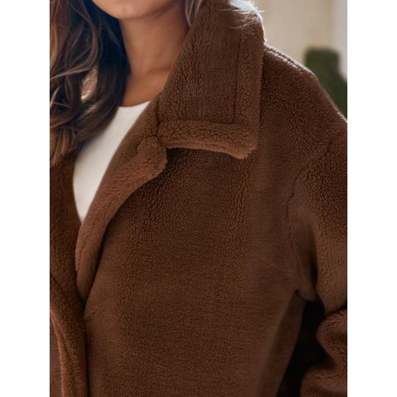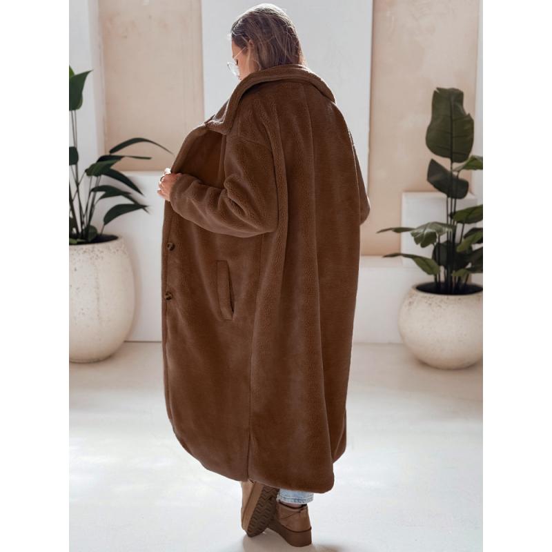 Dámska zimná bunda, teddy kožušina, dlhá, kamelová