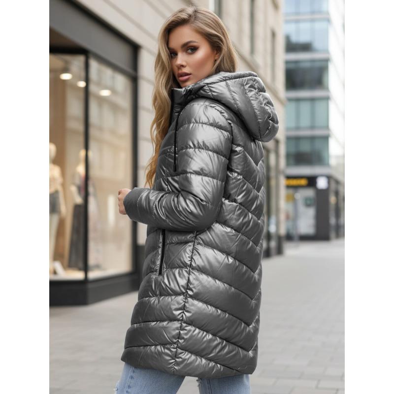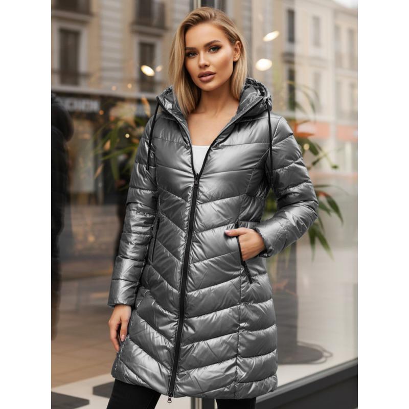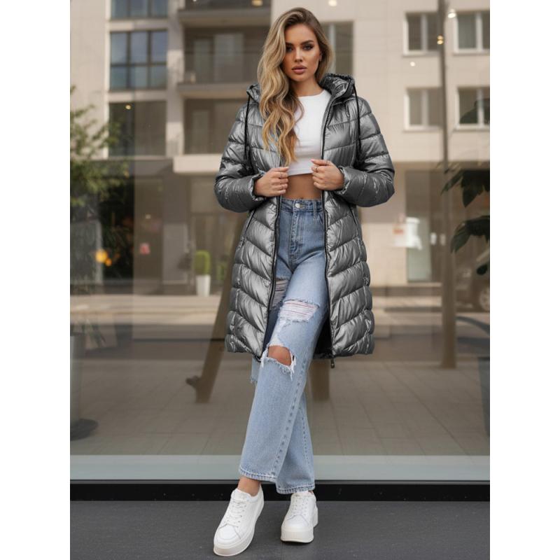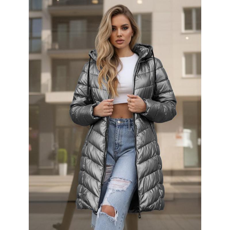 Dámska zimná dlhá prešívaná bunda, strieborná