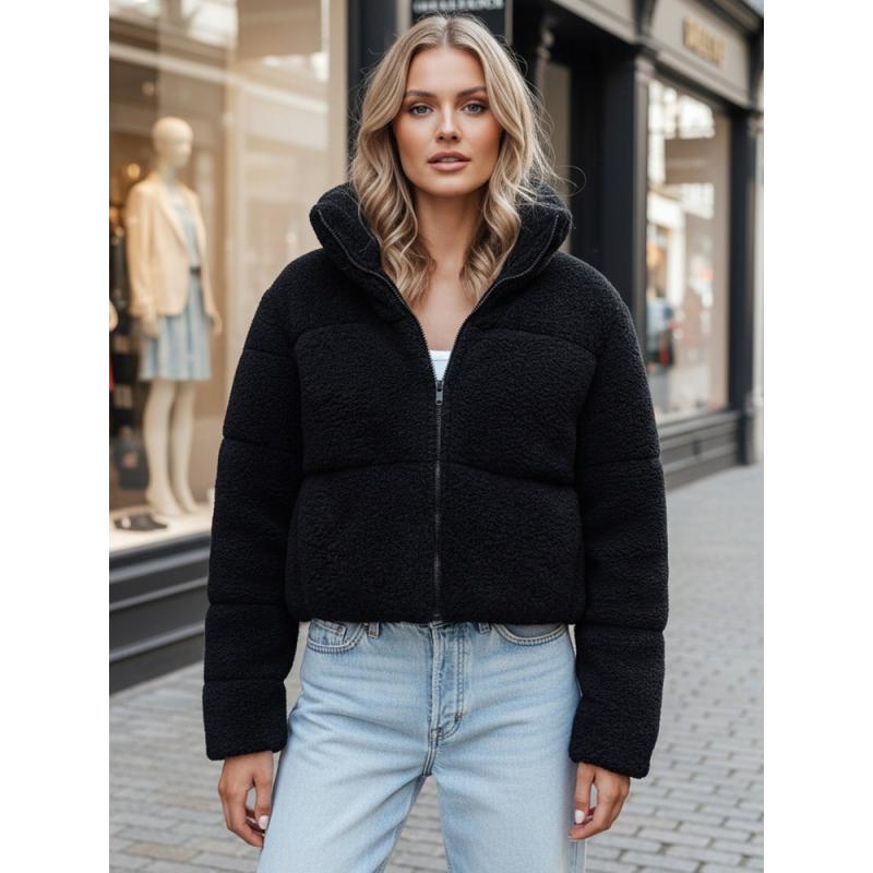 Dámska zimná krátka bunda z alpaky CELESTIAL, čierna
