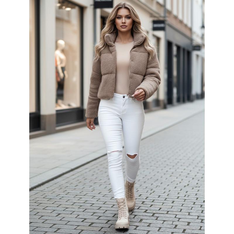 Dámska zimná krátka bunda z alpaky CELESTIAL, kamelová