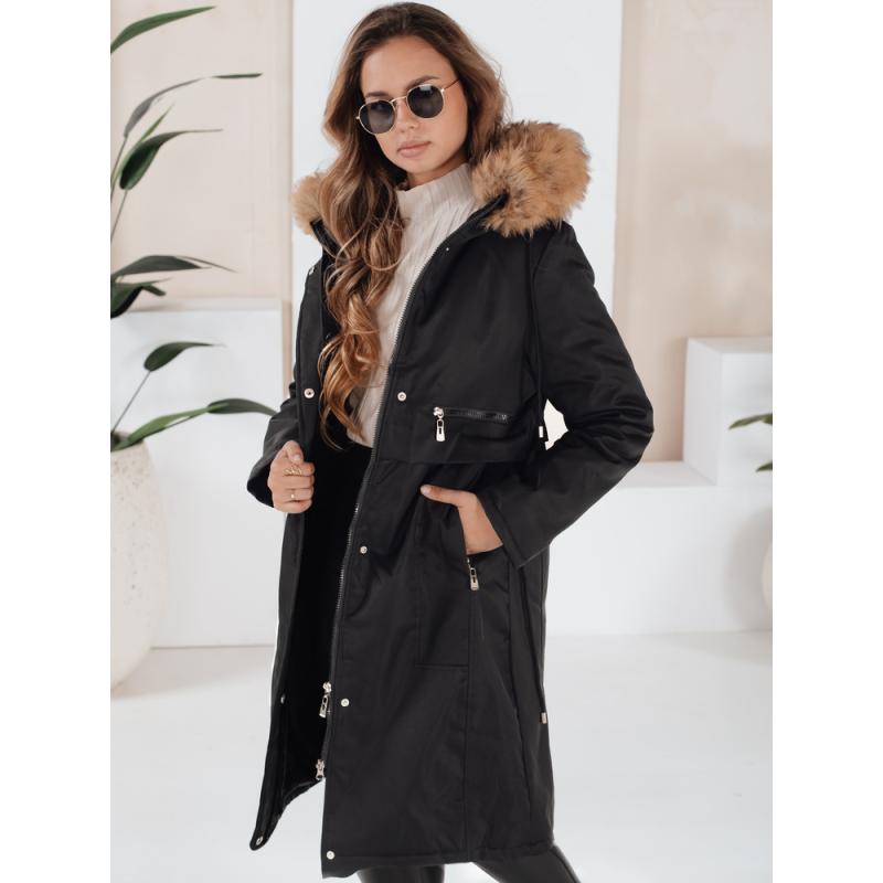 Dámska zimná parka s kožušinovým lemovaním, čierna