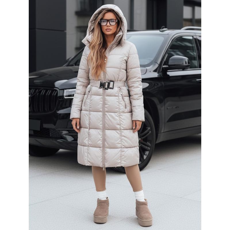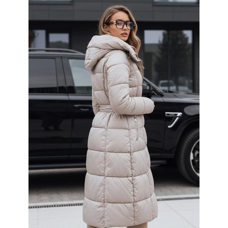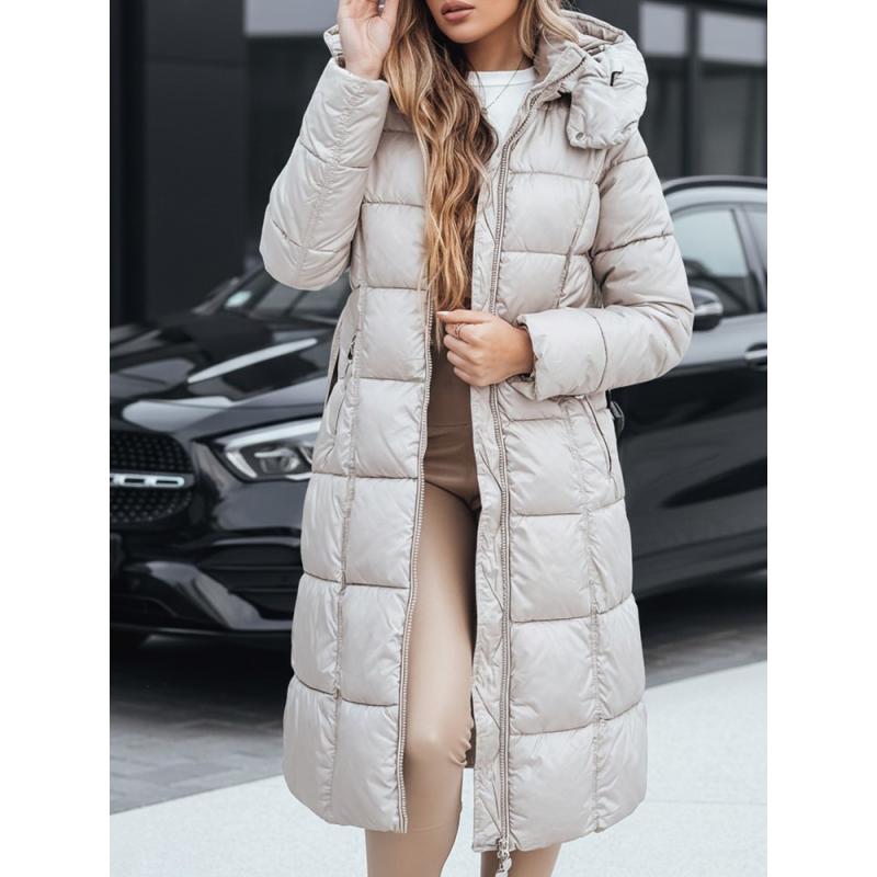 Dámska zimná prešívaná bunda s kapucňou, béžová