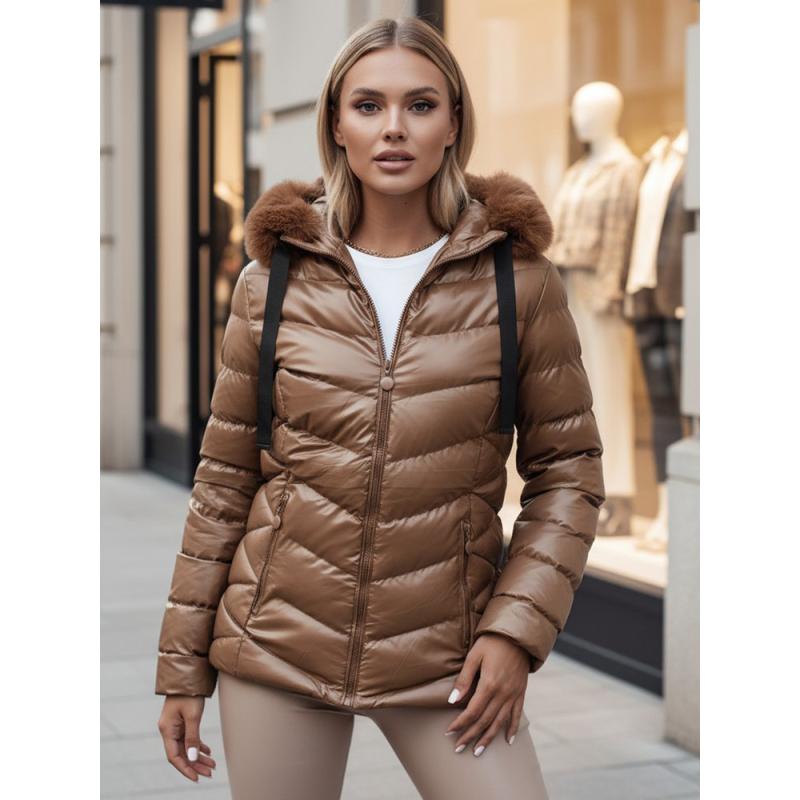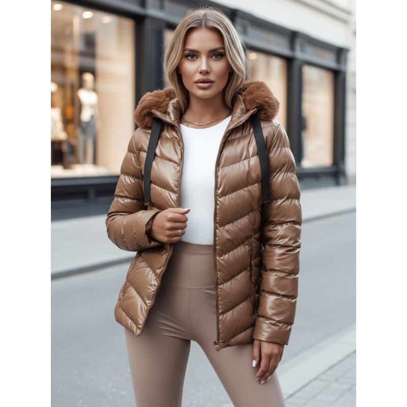 Dámska zimná prešívaná bunda s kapucňou MIRIAL hnedá