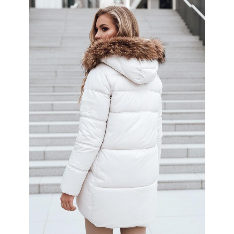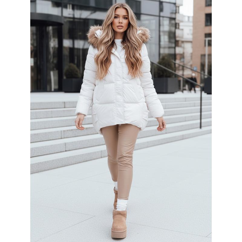 Dámska zimná prešívaná bunda s kapucňou, svetlo béžová