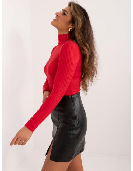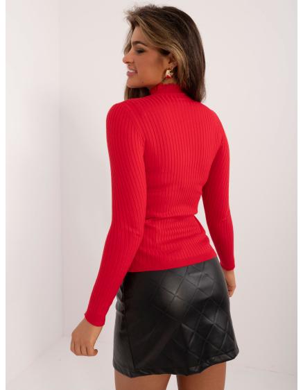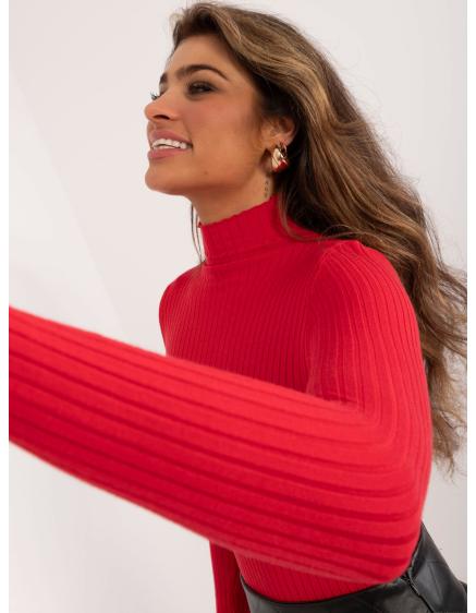Dámsky rebrovaný sveter s rolákom červený