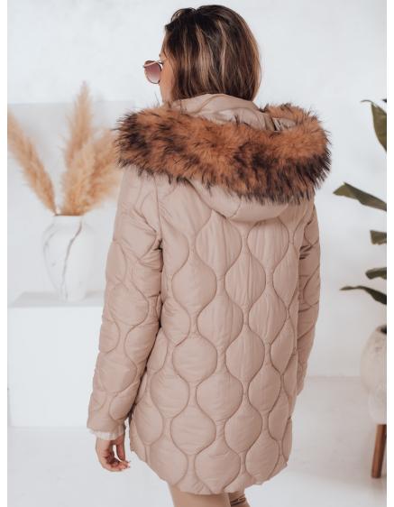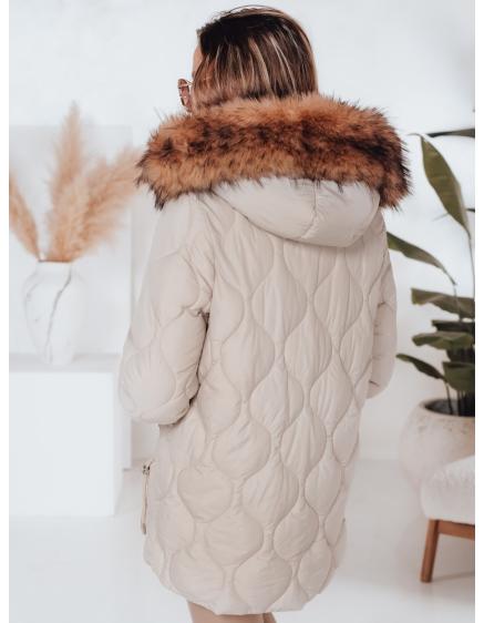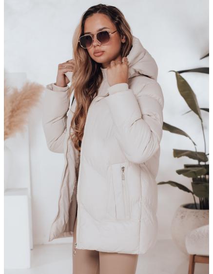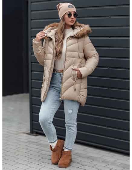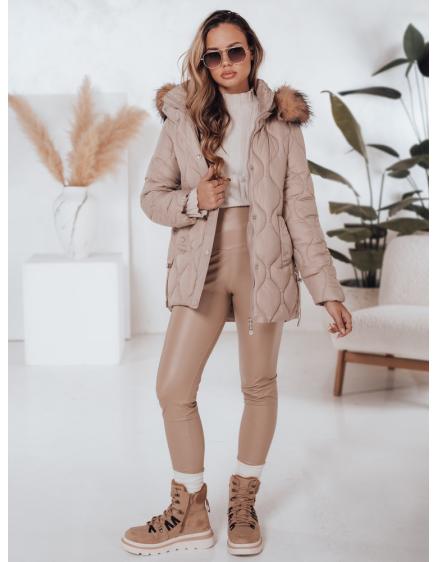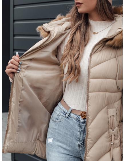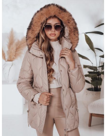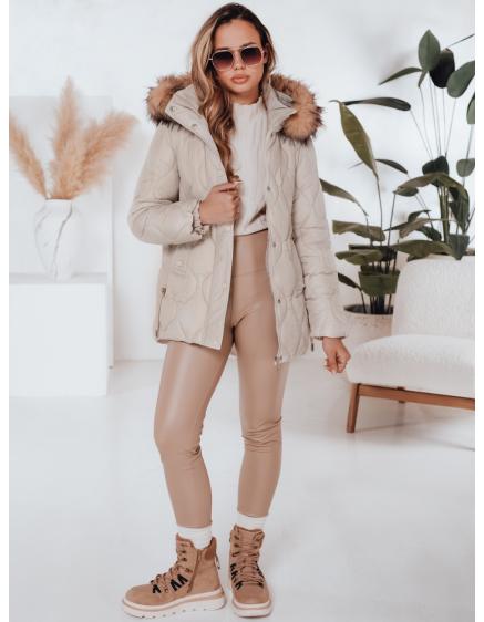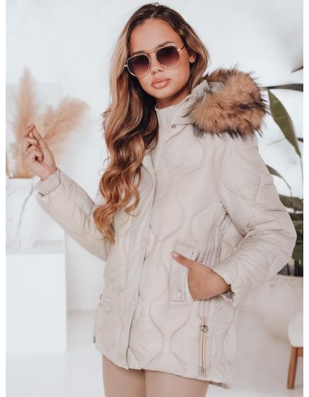 Dámska prešívaná zimná bunda s kapucňou LUMORE svetlo béžová