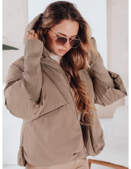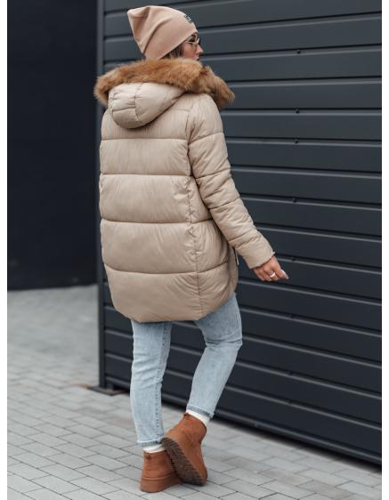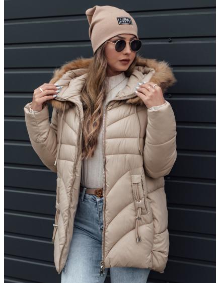 Dámska zimna bunda MISSLAYER s kapucou, tmavo béžová
