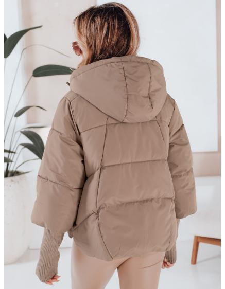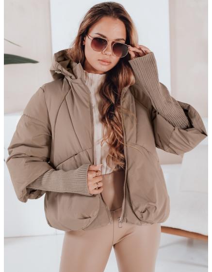 Dámska zimná bunda LOVEWARM, krátka prešívaná s kapucňou, tmavo béžová