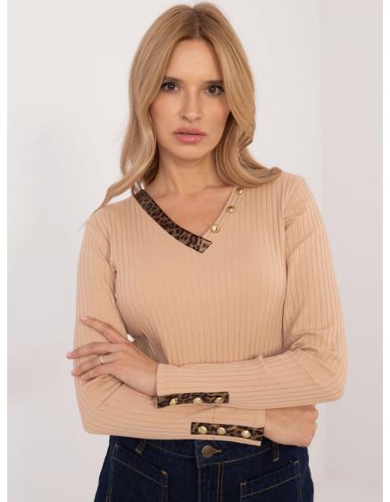 Ecru blúzka s dlhým rukávom s leopardími vsadkami