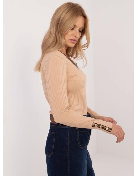 Ecru blúzka s dlhým rukávom s ozdobnými gombíkmi