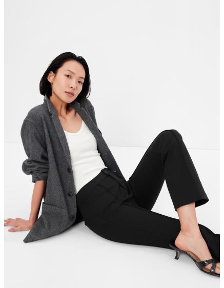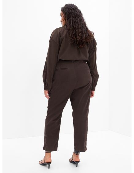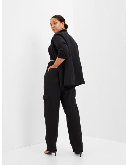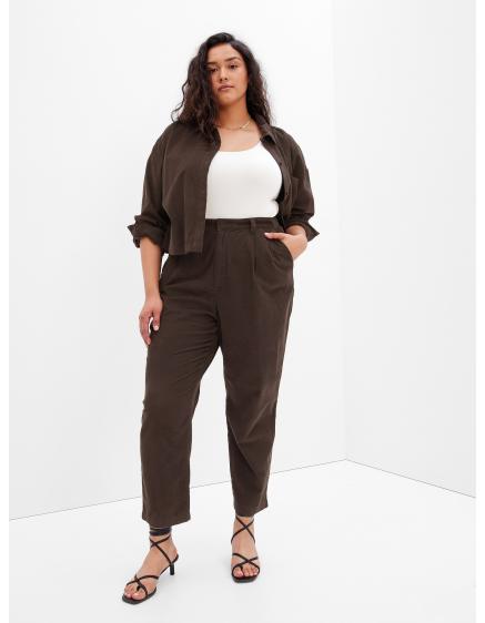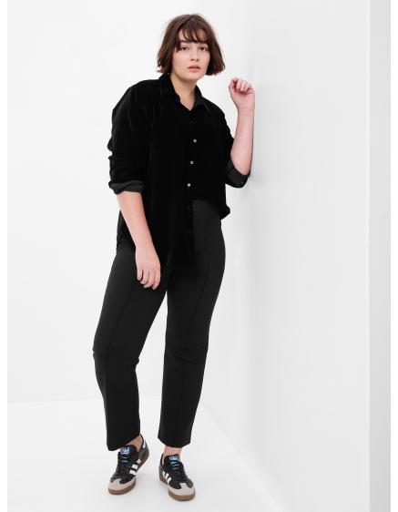 - Väčší zadoček a širšie boky skryjú nohavice s vysokým pásom a rovnými nohavicami, ktoré predĺžia nohy.