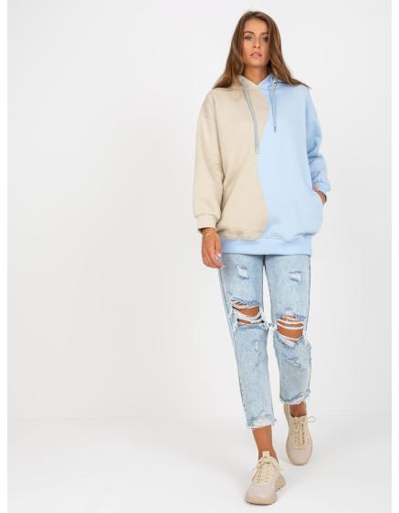 Dámska mikina s kapucňou RUE PARIS béžovo-modrá