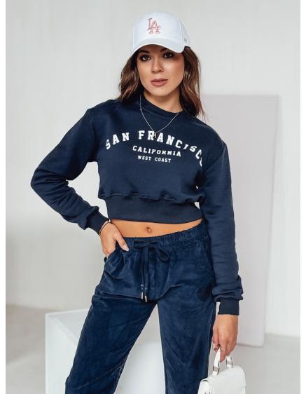 Dámska mikina crop top SAN FRANCISCO s potlačou tmavo modrá