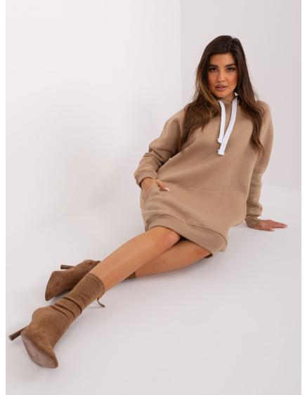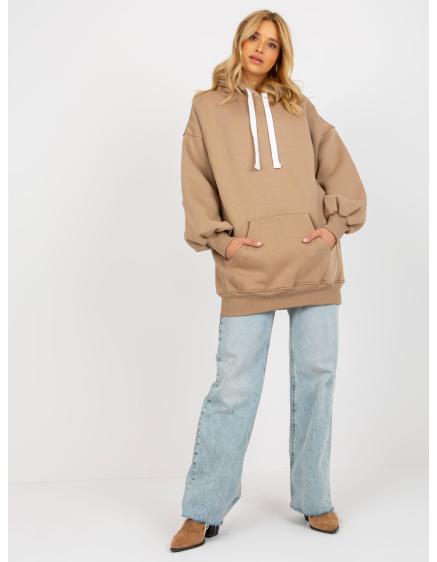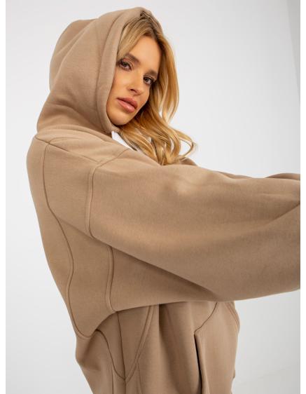 Dámska mikina oversize s kapucňou ADELINE tmavo béžová