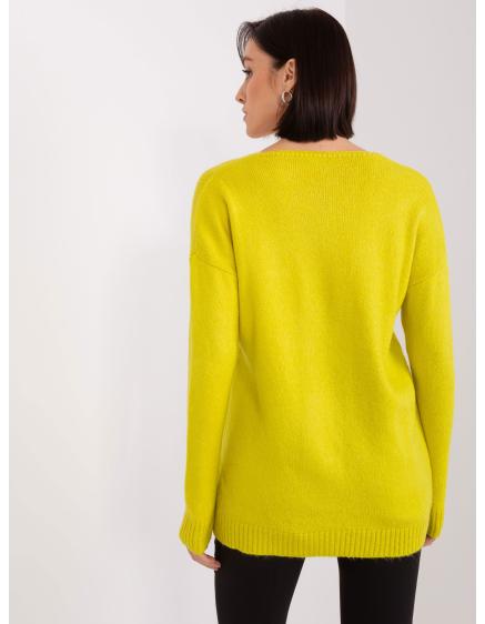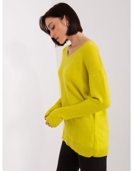 Dámsky sveter s výstrihom RUE PARIS limetkovo zelený